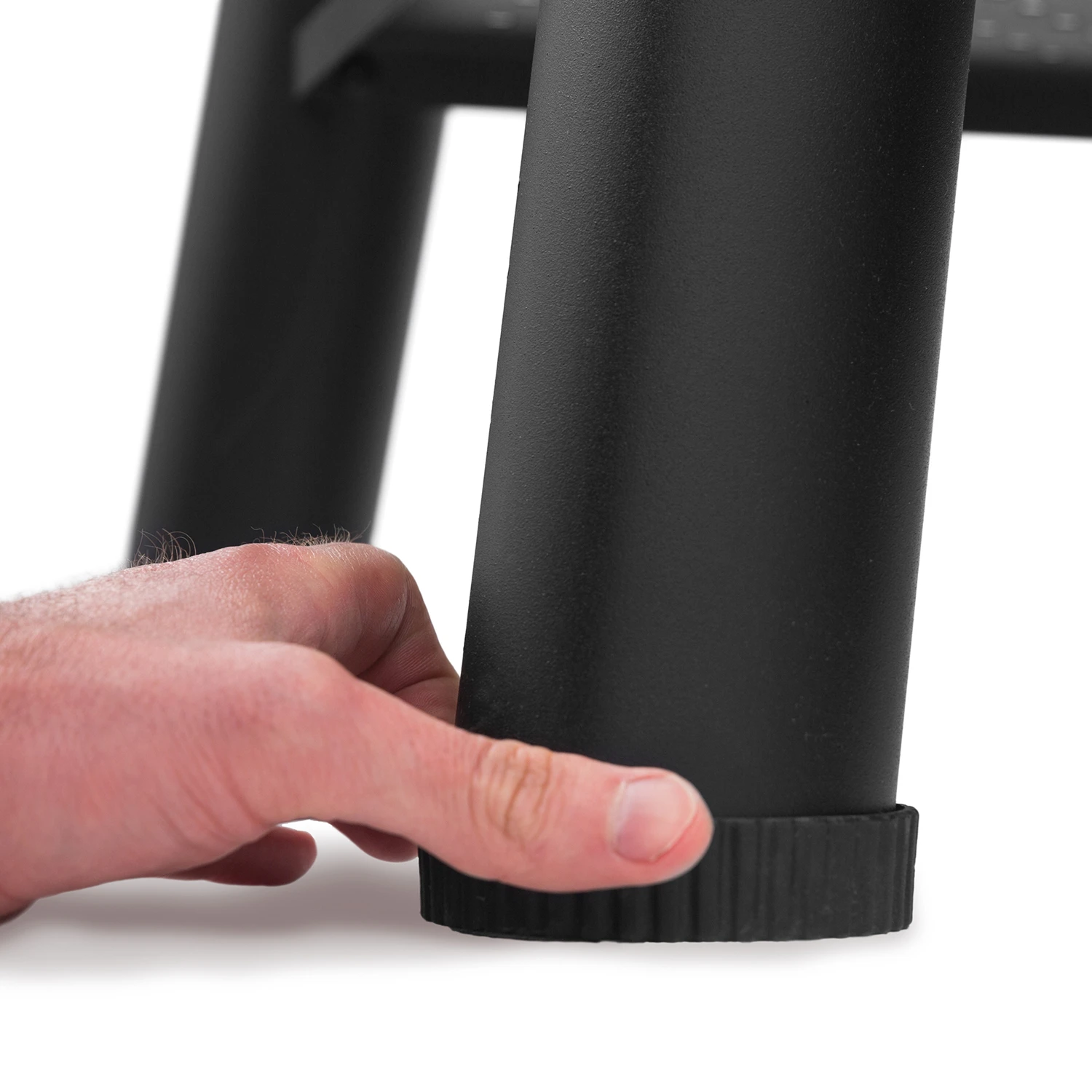 - Zwei Räder, zwei höhenverstellbare Standfüße