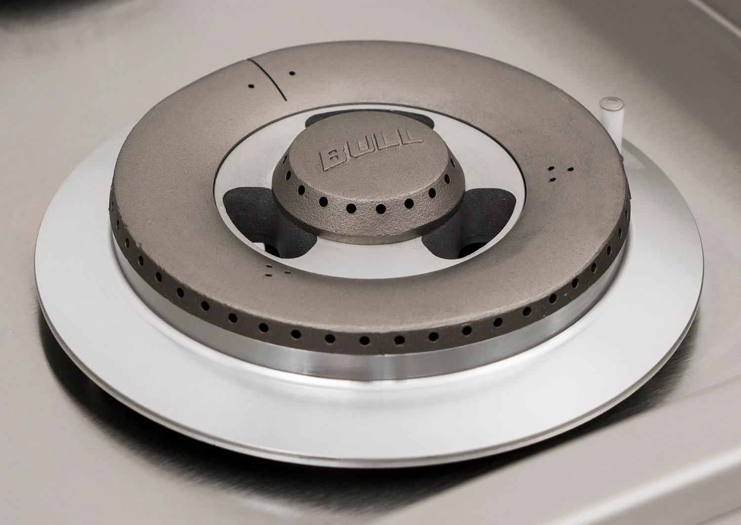 Die beiden separat regulierbaren Brenner bestehen aus massivem Messing und verfügen mit zusammen 6,4 kW über richtig viel Leistung. Gezündet wird die BULL Seitenkochstelle per Piezo-Zündung und ist damit komplett unabhängig von einem Netzanschluss.