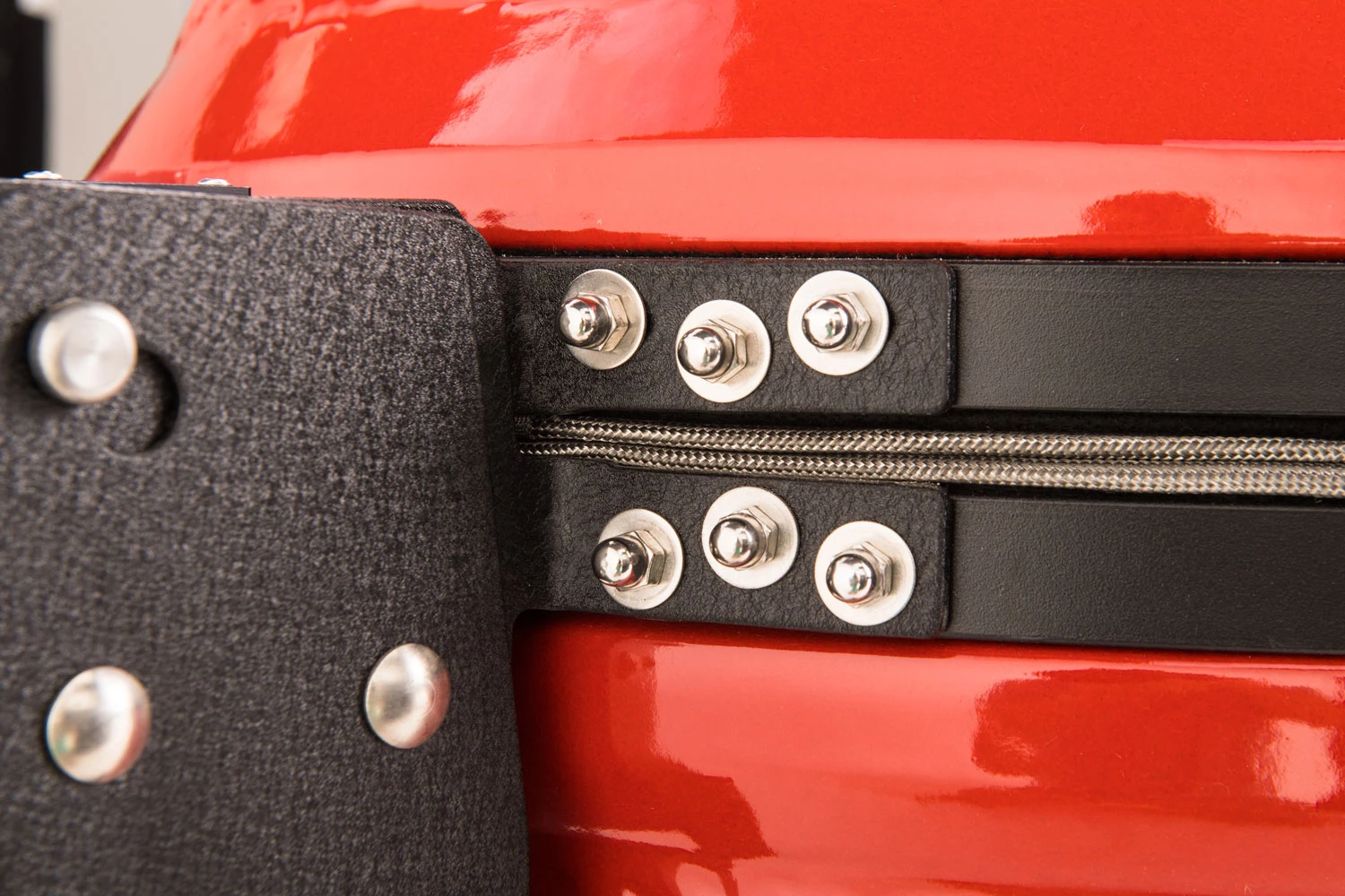Bereits beim Öffnen des Deckels merken Sie sofort den Unterschied zu anderen Keramikgrill Modellen. Anders als bei vergleichbaren Modellen werden Sie beim Öffnen des Deckels durch ein patentiertes Luftdruckscharnier unterstützt, dadurch wird die benötigte Kraft zum Bewegen des Deckels um bis zu 96% verringert.