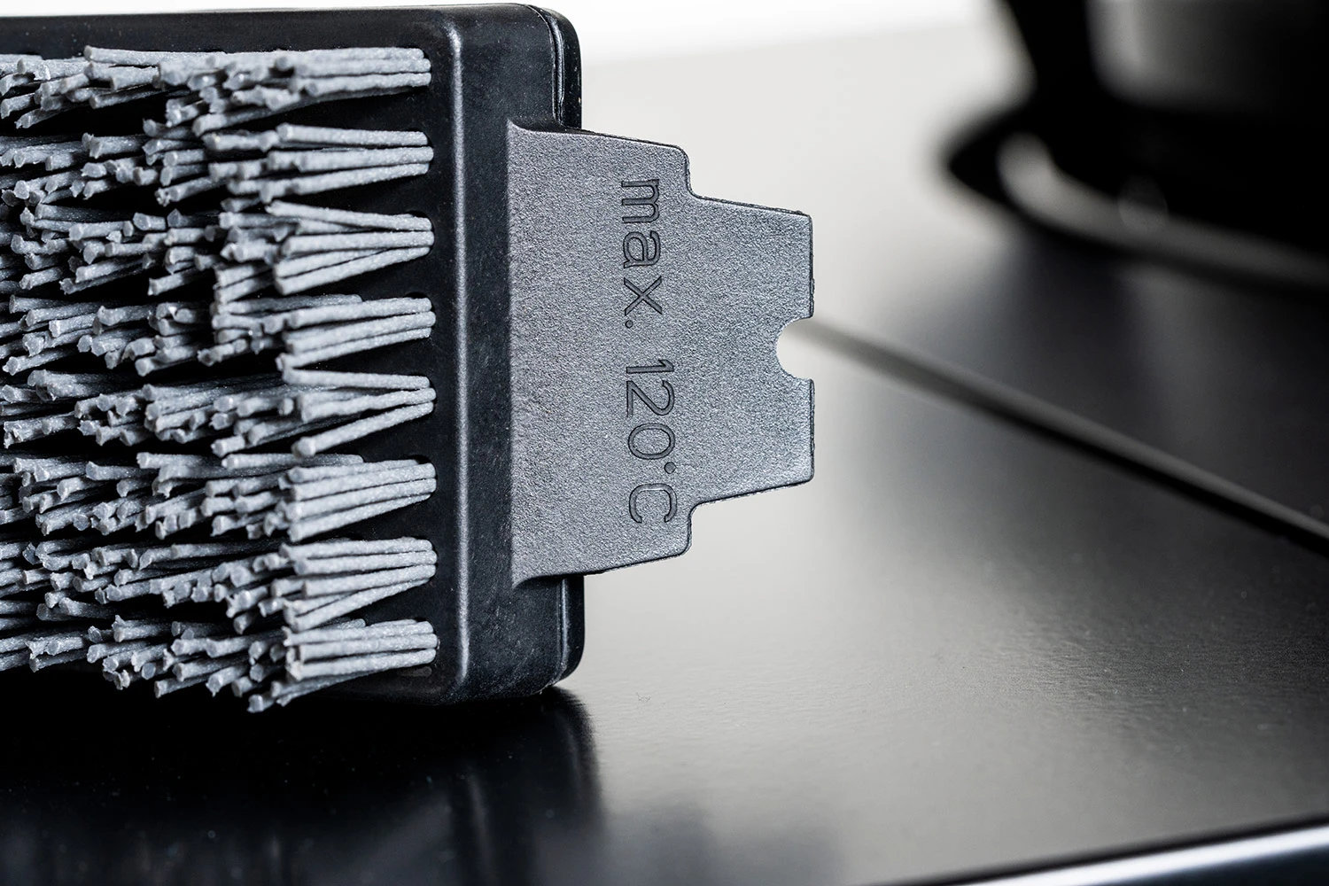 Die Grillbürste ist für die Kaltreinigung bei bis zu 120° C geeignet.